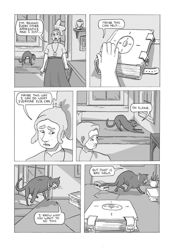 Elaine is the apprentice of the most powerful witch in the town, Celeste, which means she’s highly likely to hold that title in the future. However one thing stands in her way: the fact that she can barely do magic. Fed up and tired of being behind her peers Elaine turns to a mysterious book of magic spells to help her become better at magic. But does it turn out the way she wants it to?